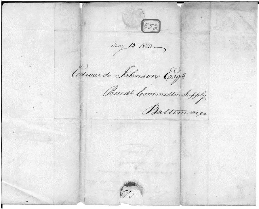Baltimore City Archives, Record Group 22 War of 1812 Records , msa-sc5458-45-20-0014 Baltimore City Archives, Record Group 22 War of 1812 Records msa-sc5458-45-20-0014 Enlarge and print image (177K) Jump to page << PREVIOUS NEXT >> 552 May 15 1813 Edward Johnson Esqr. Presidt. Committee Supply Baltimore Baltimore City Archives, Record Group 22 War of 1812 Records msa-sc5458-45-20-0014 Enlarge and print image (177K) Jump to page << PREVIOUS NEXT >> |