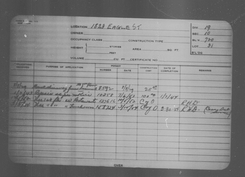 Baltimore City Archives (Baltimore City Property Building Permits) brg48_bca652-0351 Enlarge and print image (120K)      |