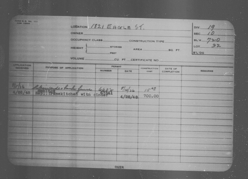 Baltimore City Archives (Baltimore City Property Building Permits) brg48_bca652-0352 Enlarge and print image (112K)      |