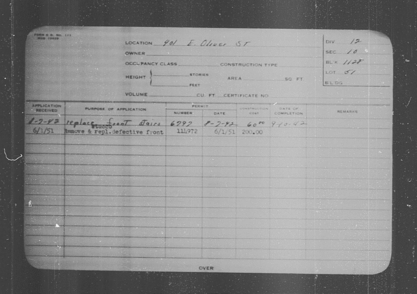 Baltimore City Archives (Baltimore City Property Building Permits) brg48_bca655-0363 Enlarge and print image (130K)      |