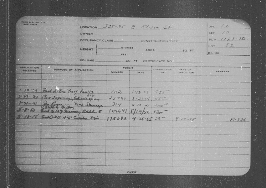 Baltimore City Archives (Baltimore City Property Building Permits) brg48_bca655-0364 Enlarge and print image (143K)      |