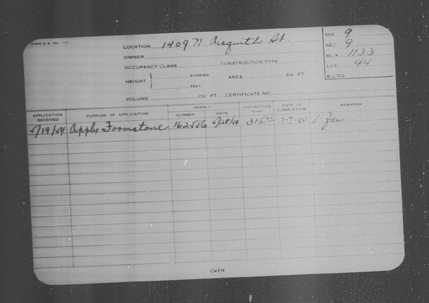 Baltimore City Archives (Baltimore City Property Building Permits) brg48_bca655-0453 Enlarge and print image (123K)      |