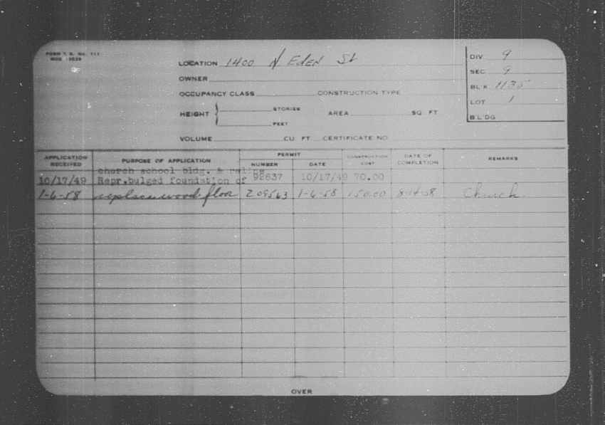 Baltimore City Archives (Baltimore City Property Building Permits) brg48_bca655-0481 Enlarge and print image (129K)      |
