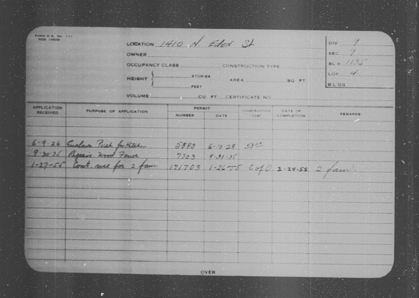 Baltimore City Archives (Baltimore City Property Building Permits) brg48_bca655-0484 Enlarge and print image (135K)      |