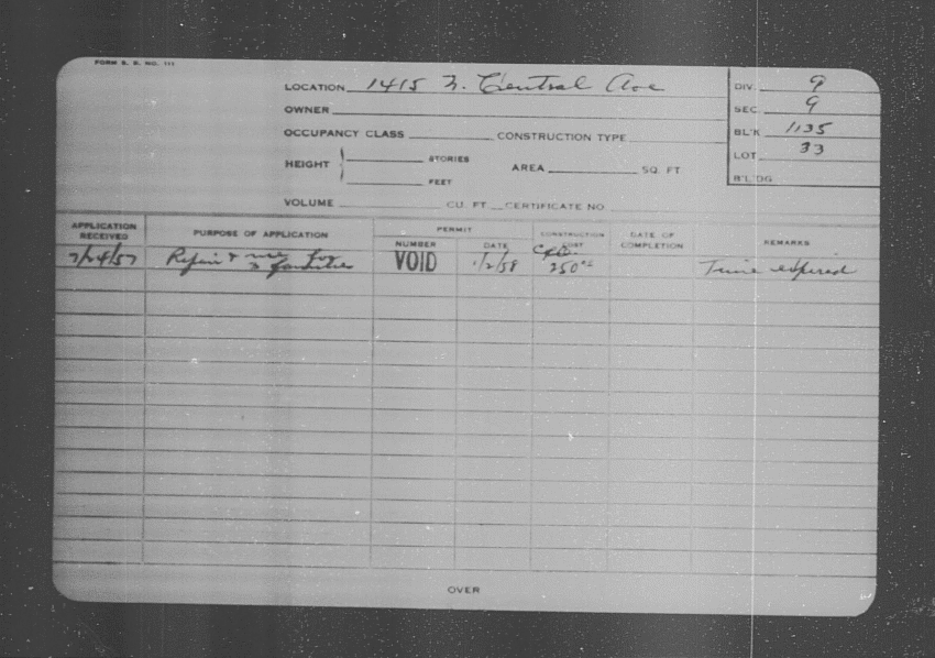 Baltimore City Archives (Baltimore City Property Building Permits) brg48_bca655-0509 Enlarge and print image (125K)      |