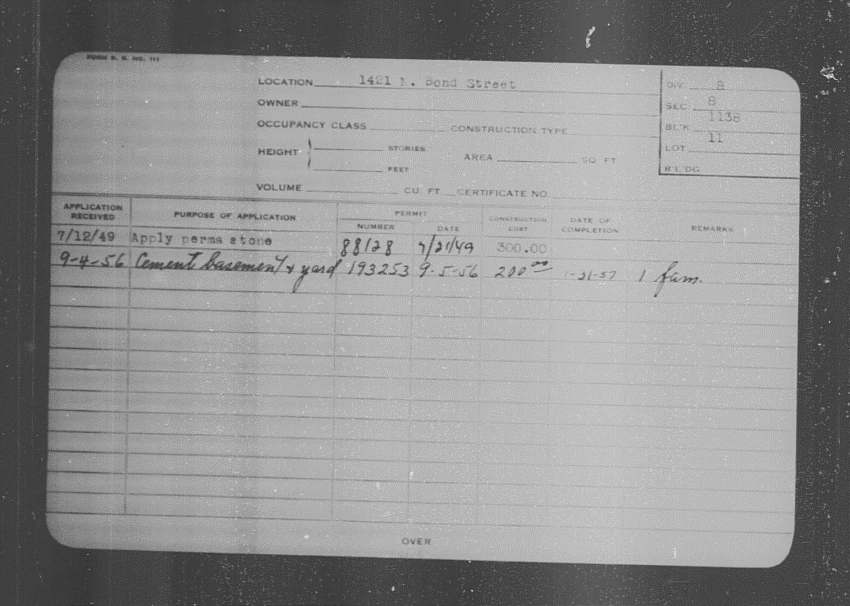 Baltimore City Archives (Baltimore City Property Building Permits) brg48_bca655-0563 Enlarge and print image (128K)      |