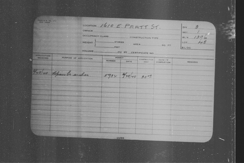 Baltimore City Archives (Baltimore City Property Building Permits) brg48_bca657-0529 Enlarge and print image (202K)      |