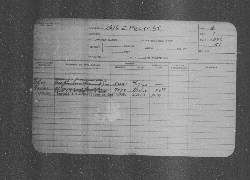 Baltimore City Archives (Baltimore City Property Building Permits) brg48_bca657-0530 Enlarge and print image (189K)      |