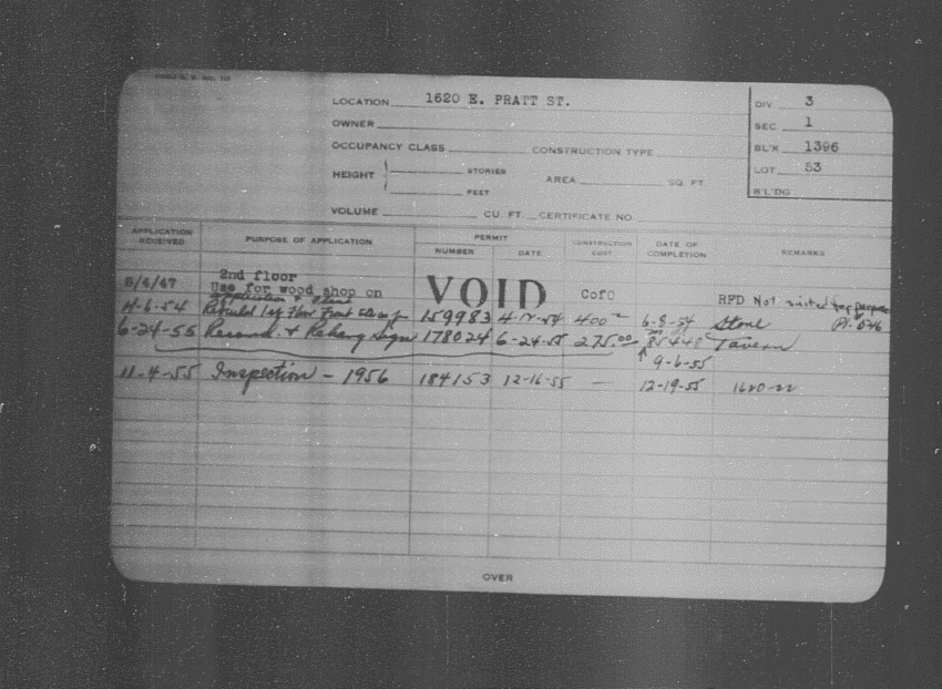 Baltimore City Archives (Baltimore City Property Building Permits) brg48_bca657-0536 Enlarge and print image (192K)      |