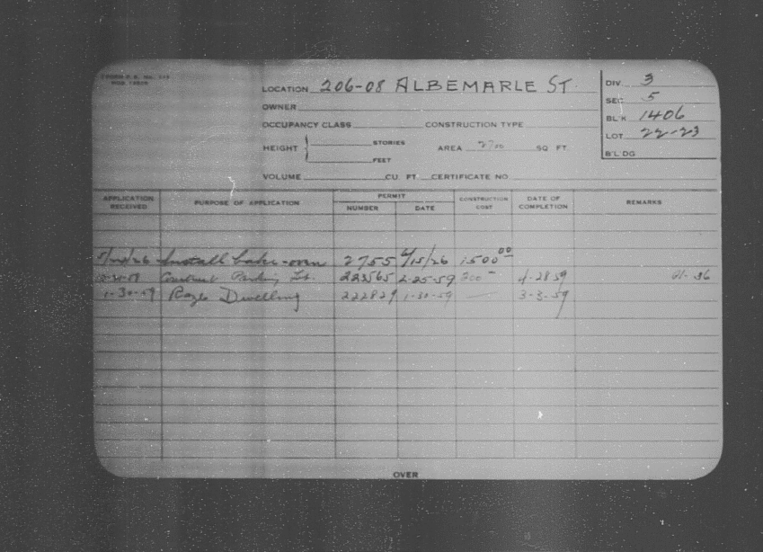 Baltimore City Archives (Baltimore City Property Building Permits) brg48_bca657-0574 Enlarge and print image (165K)      |