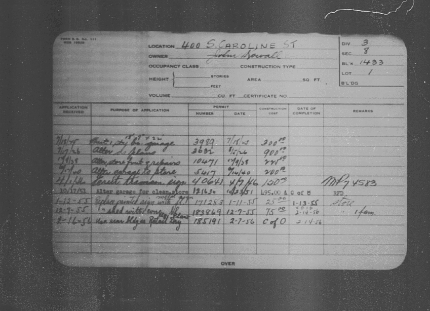 Baltimore City Archives (Baltimore City Property Building Permits) brg48_bca657-1106 Enlarge and print image (167K)      |