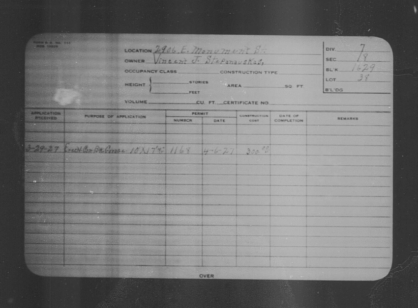 Baltimore City Archives (Baltimore City Property Building Permits) brg48_bca659-1815 Enlarge and print image (135K)      |