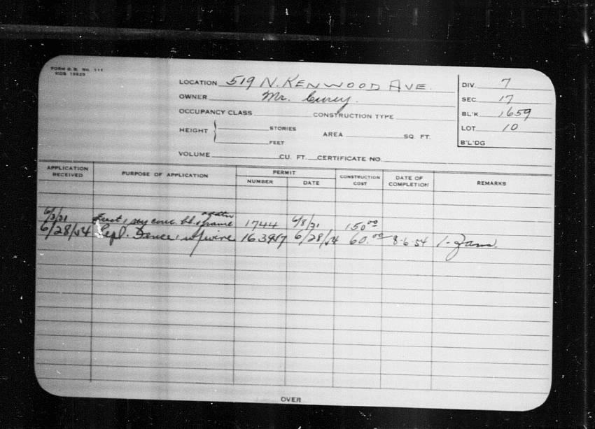Baltimore City Archives (Baltimore City Property Building Permits) brg48_bca660-0077 Enlarge and print image (174K)      |