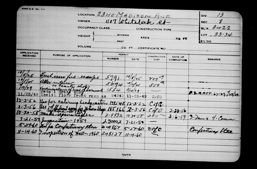 Baltimore City Archives (Baltimore City Property Building Permits) brg48_bca672-1171 Enlarge and print image (191K)      |