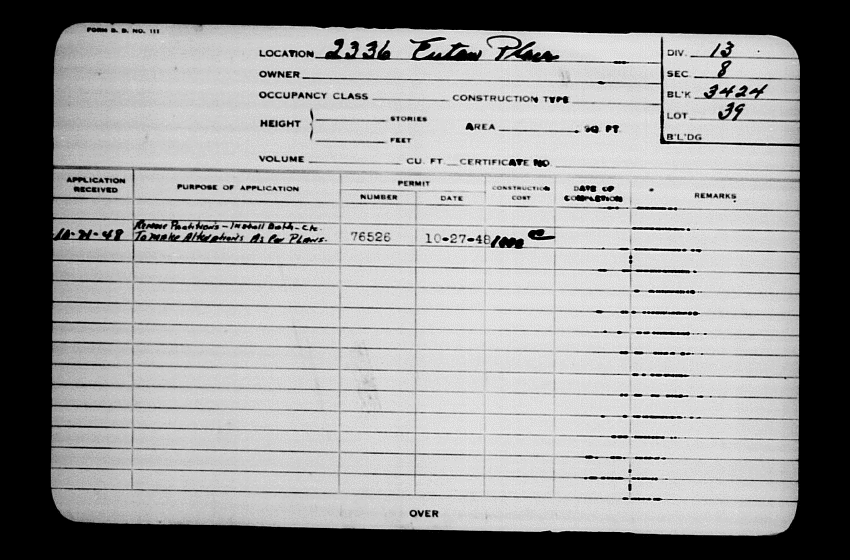 Baltimore City Archives (Baltimore City Property Building Permits) brg48_bca672-1247 Enlarge and print image (152K)      |