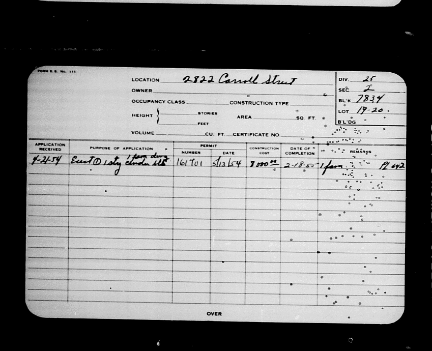 Baltimore City Archives (Baltimore City Property Building Permits) brg48_bca689-3192 Enlarge and print image (159K)      |