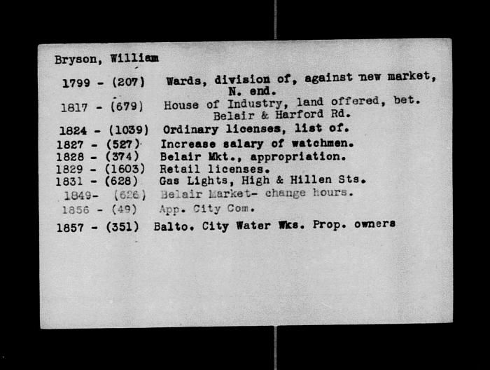 Baltimore City Archives Works Progress Administration, Historical Records Survey Name Index
