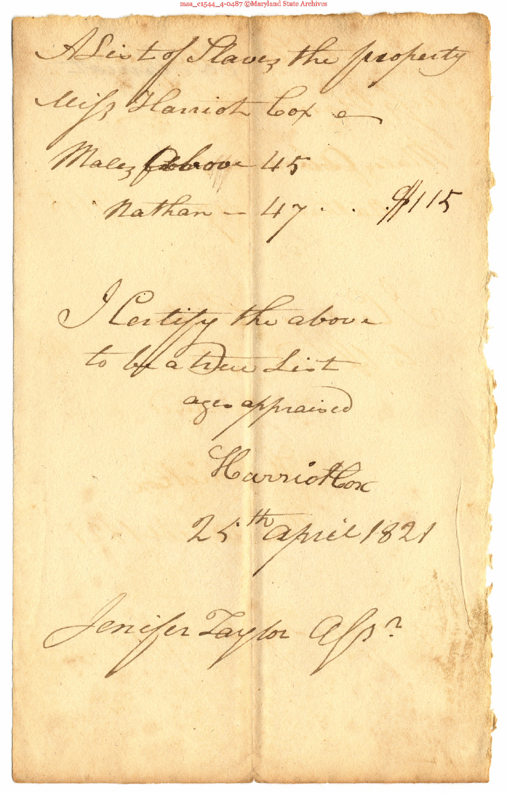 Maryland State Archives ST. MARY'S COUNTY COMMISSIONERS OF THE TAX (Assessment Record, Slaves) 1804-1821 msa_c1544_4-0487 Enlarge and print image (1M)      |