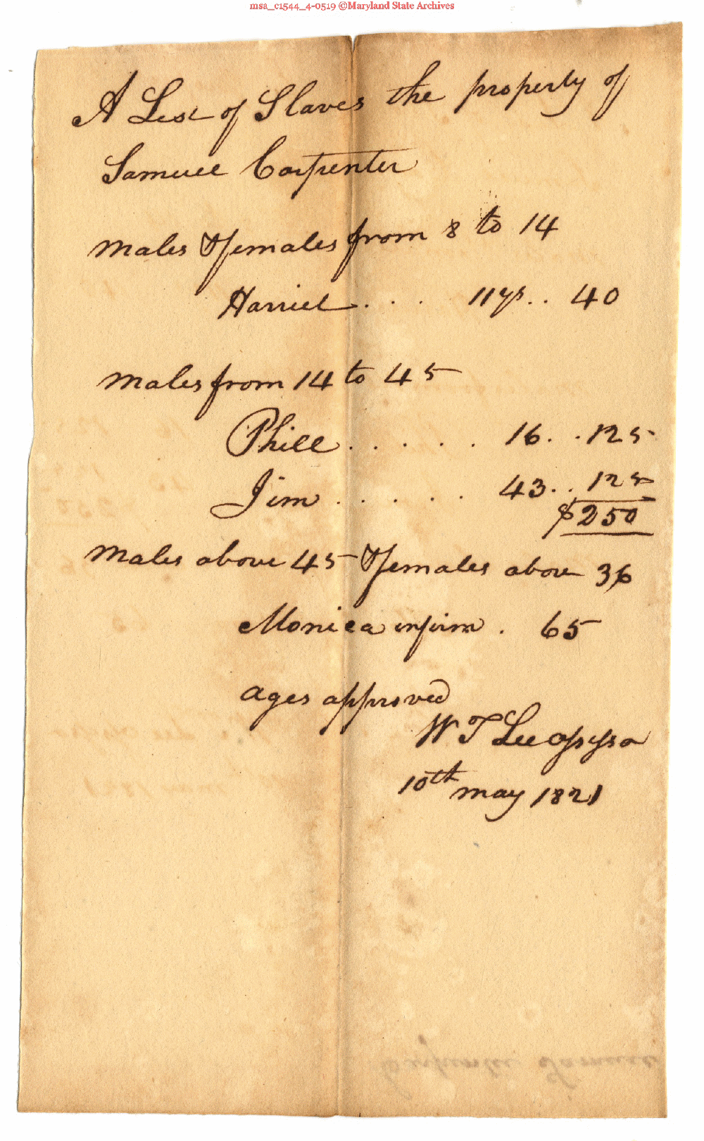 Maryland State Archives ST. MARY'S COUNTY COMMISSIONERS OF THE TAX (Assessment Record, Slaves) 1804-1821 msa_c1544_4-0519 Enlarge and print image (973K)      |