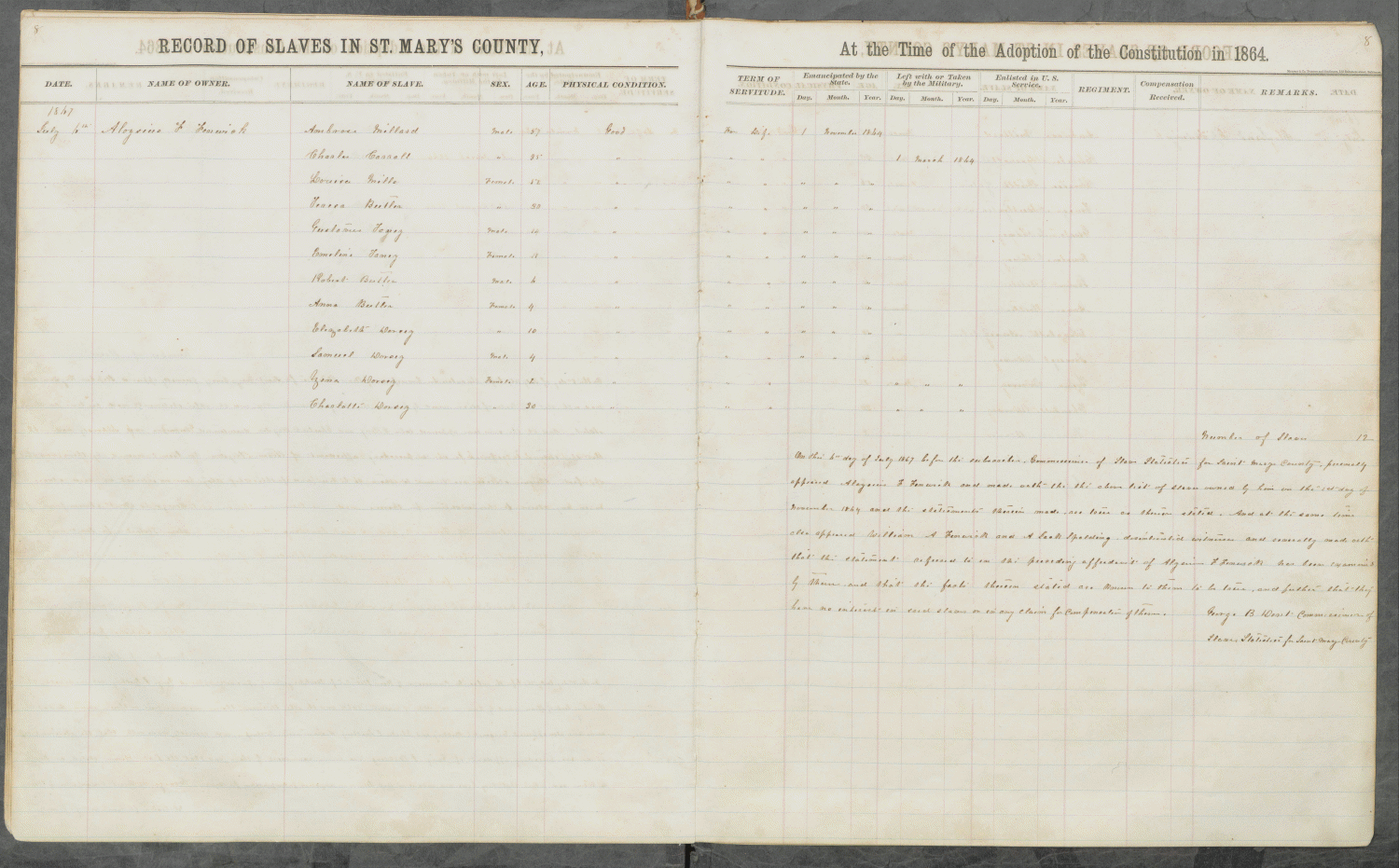 ST. MARY'S COUNTY COMMISSIONER OF SLAVE STATISTICS
