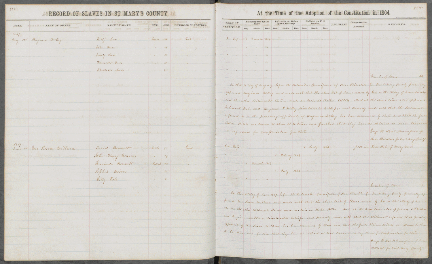 ST. MARY'S COUNTY COMMISSIONER OF SLAVE STATISTICS