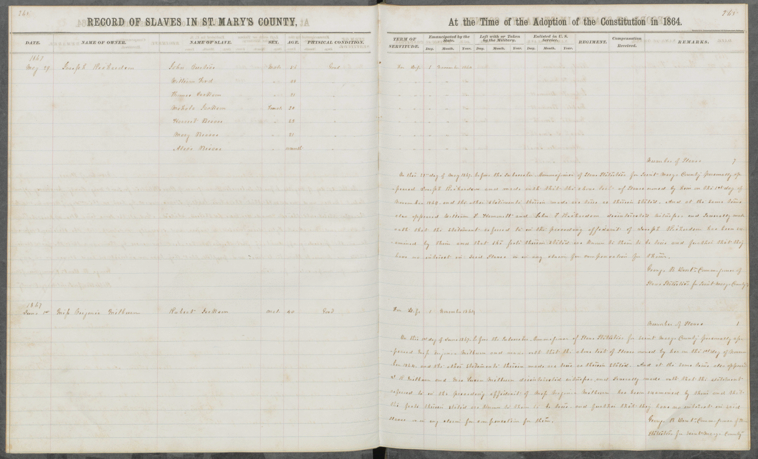 ST. MARY'S COUNTY COMMISSIONER OF SLAVE STATISTICS