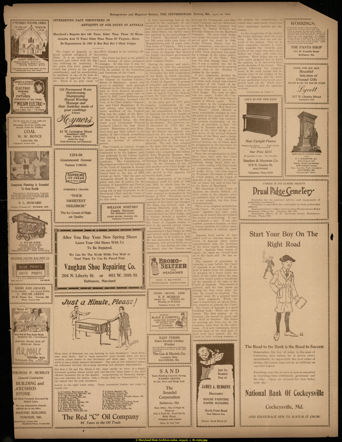 Newsgravure and Magazine Section, THE JEPFERSONIAN, Towson, Md., April 19, 1924.