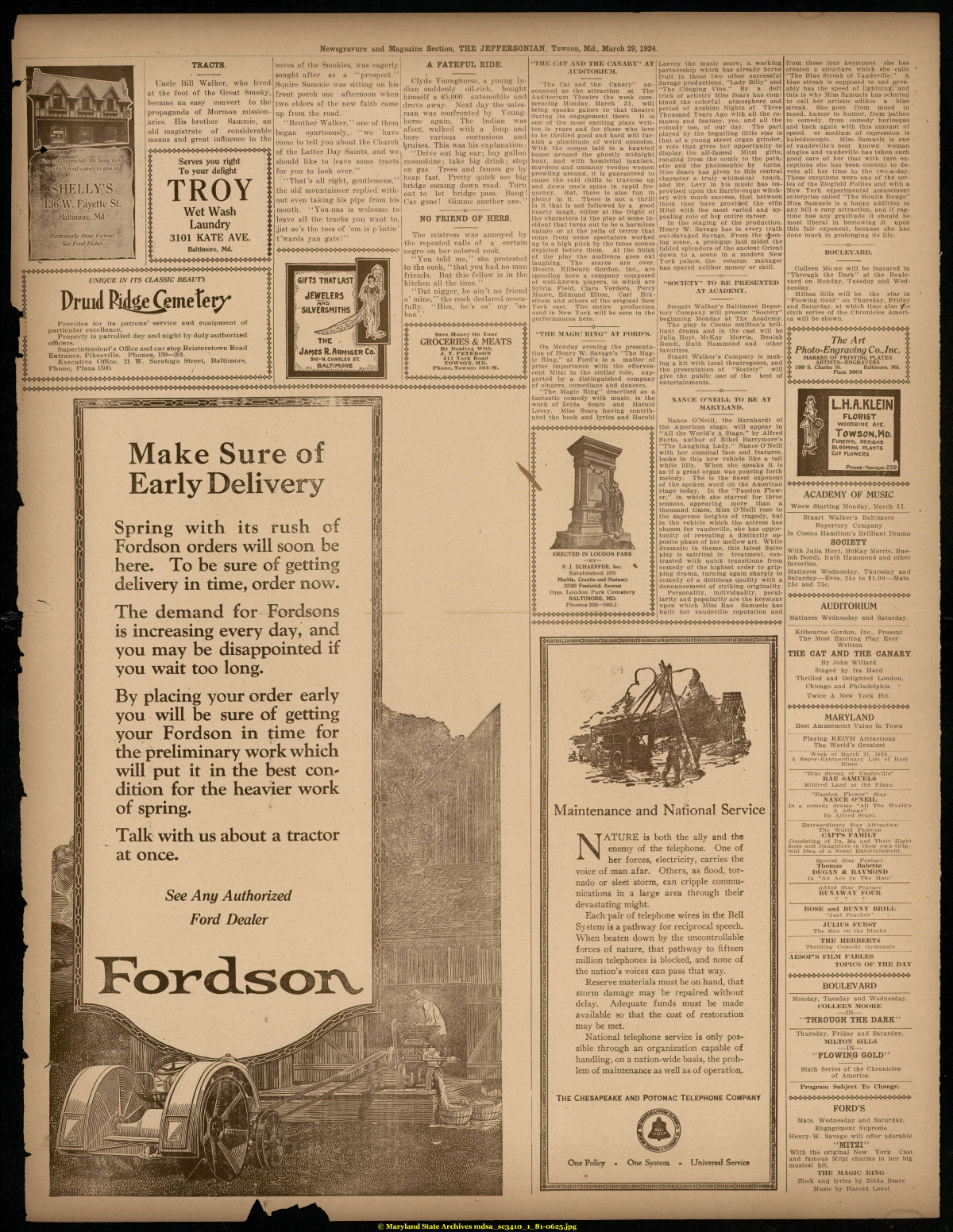 Newsgravure and Magazine Section, THE JEFFERSONIAN, Towson, Mid., March 29, 1924.