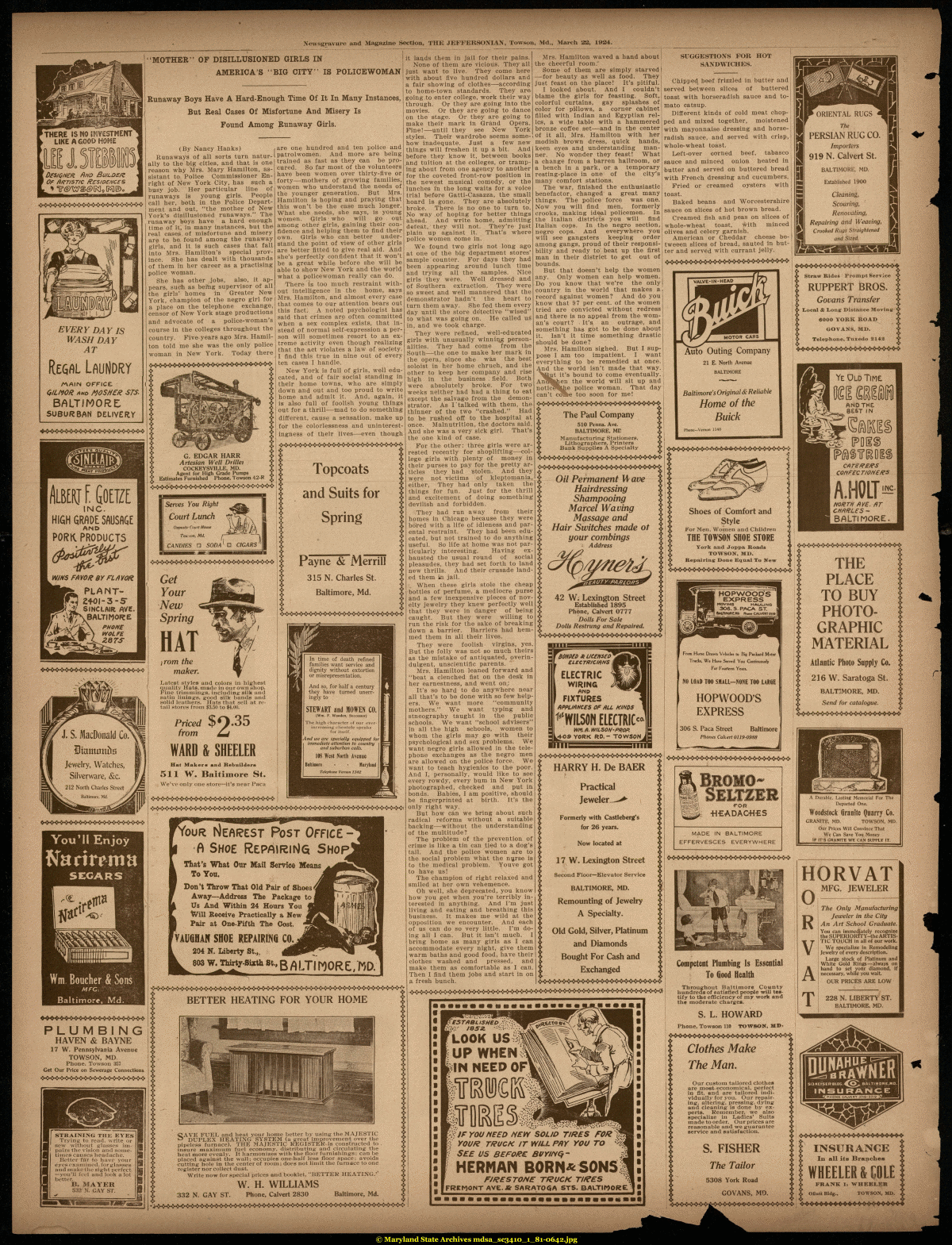 Newsgravure and Magazine Section, THE JEFFERSONIAJV, Towson, Md., March 22, 1924.
