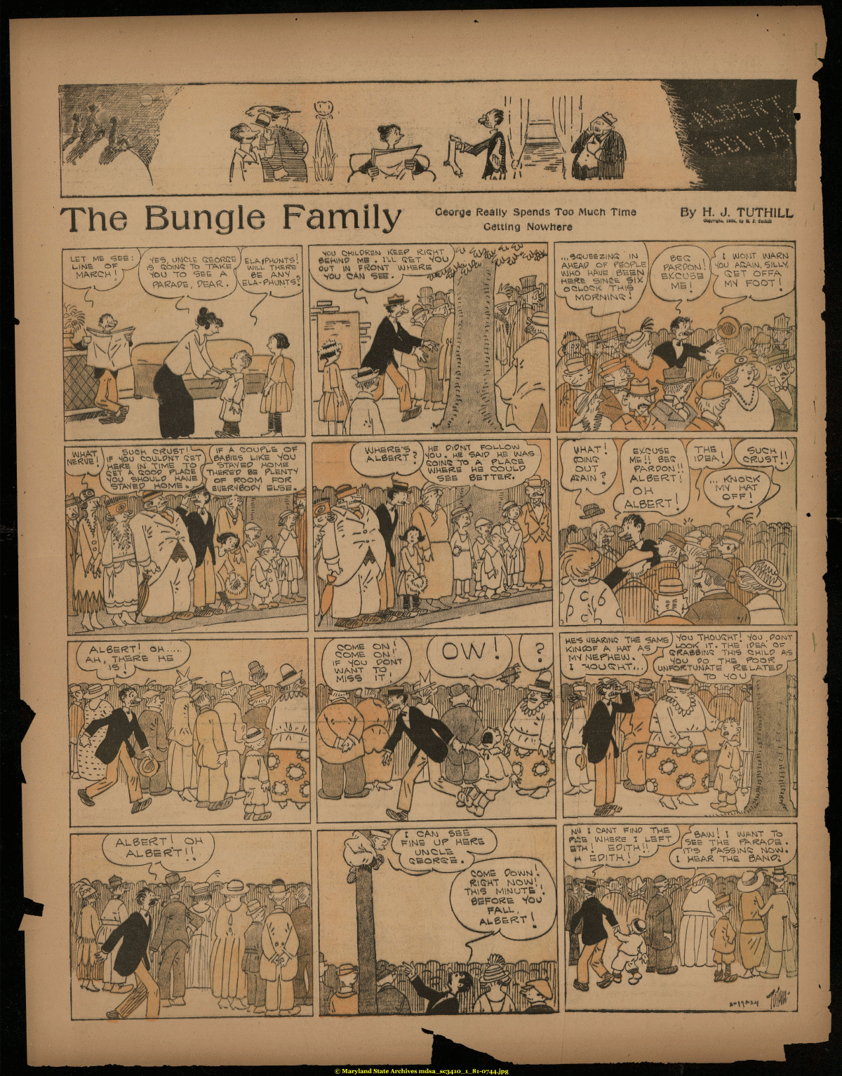 | Th _ .wwiwi'T^ 4 ^t George Raally Spends Too Much Time Getting Sy H. J, TUTHiLL 6£K\HP MB • I'LL Q^T WOO/ „ . ^..^ OUT IN ££OlsYT VMHB.^E VOU CAM SEE* >-: fAfcCtoNl WDMT \MfV£N AGAIN, 6IU-V, ST OFFA FOOT 1 KE^^EK^ne TWS 5N*Ti§^ © Maryland State Archives mdsa_sc3410_1_81-0744.jpg |