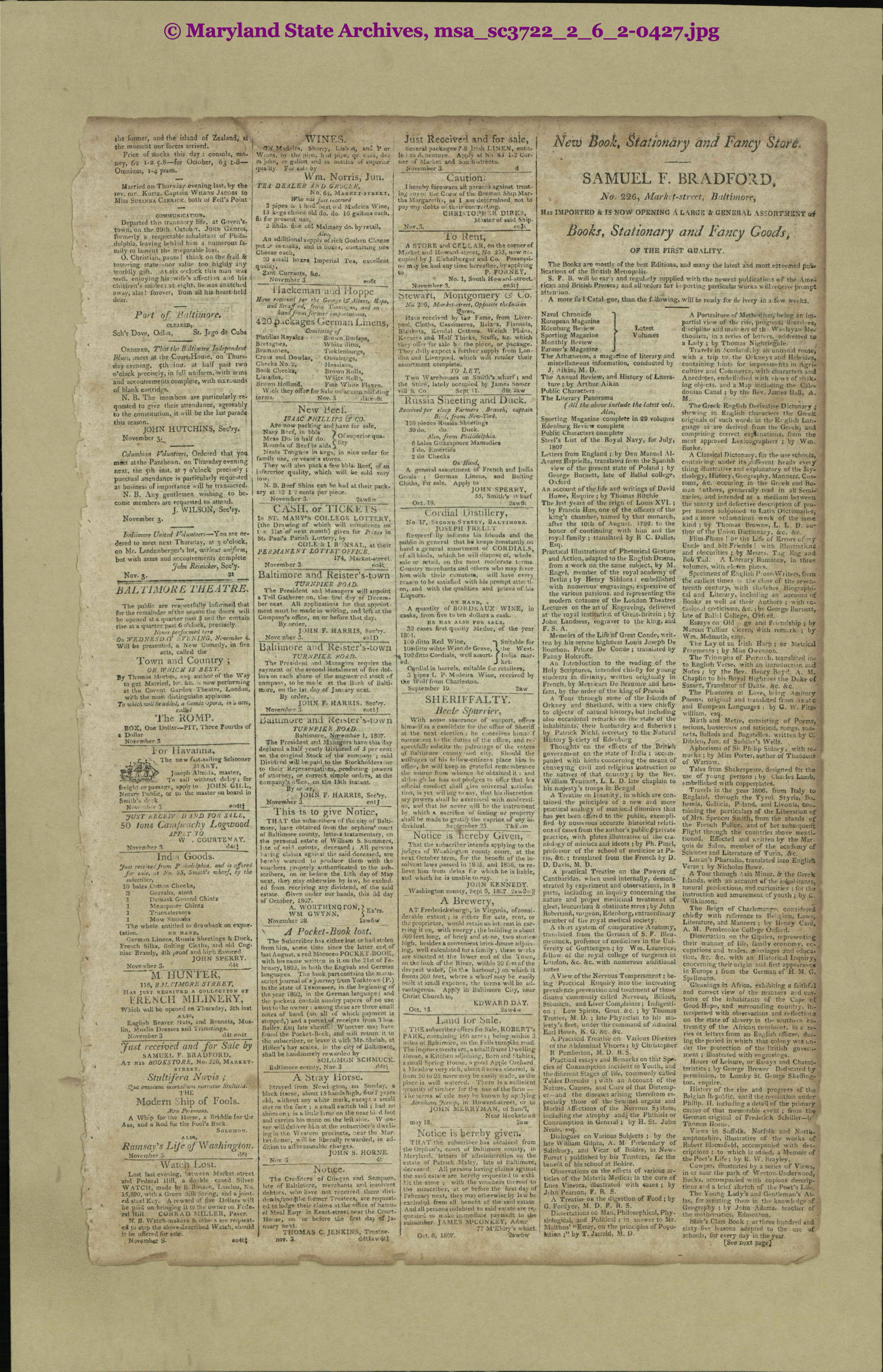 Federal Gazette & Baltimore Daily Advertiser 1807/07-1807/12 msa_sc3722_2_6_2-0427 Enlarge and print image (5M)      |