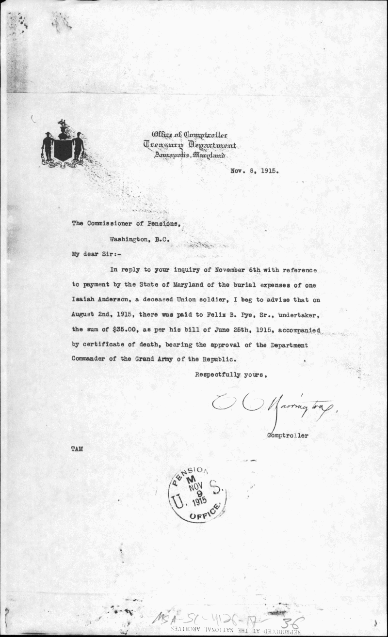 Maryland State Archives U.S. Colored Troops Pension File Collection Enlarge and print image (477K)      |