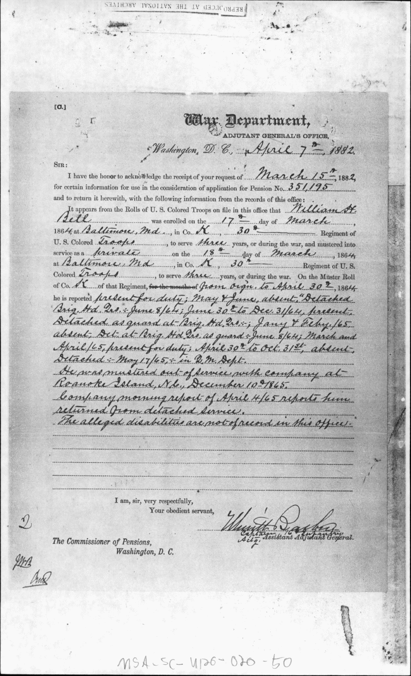 Maryland State Archives U.S. Colored Troops Pension File Collection Enlarge and print image (827K)      |