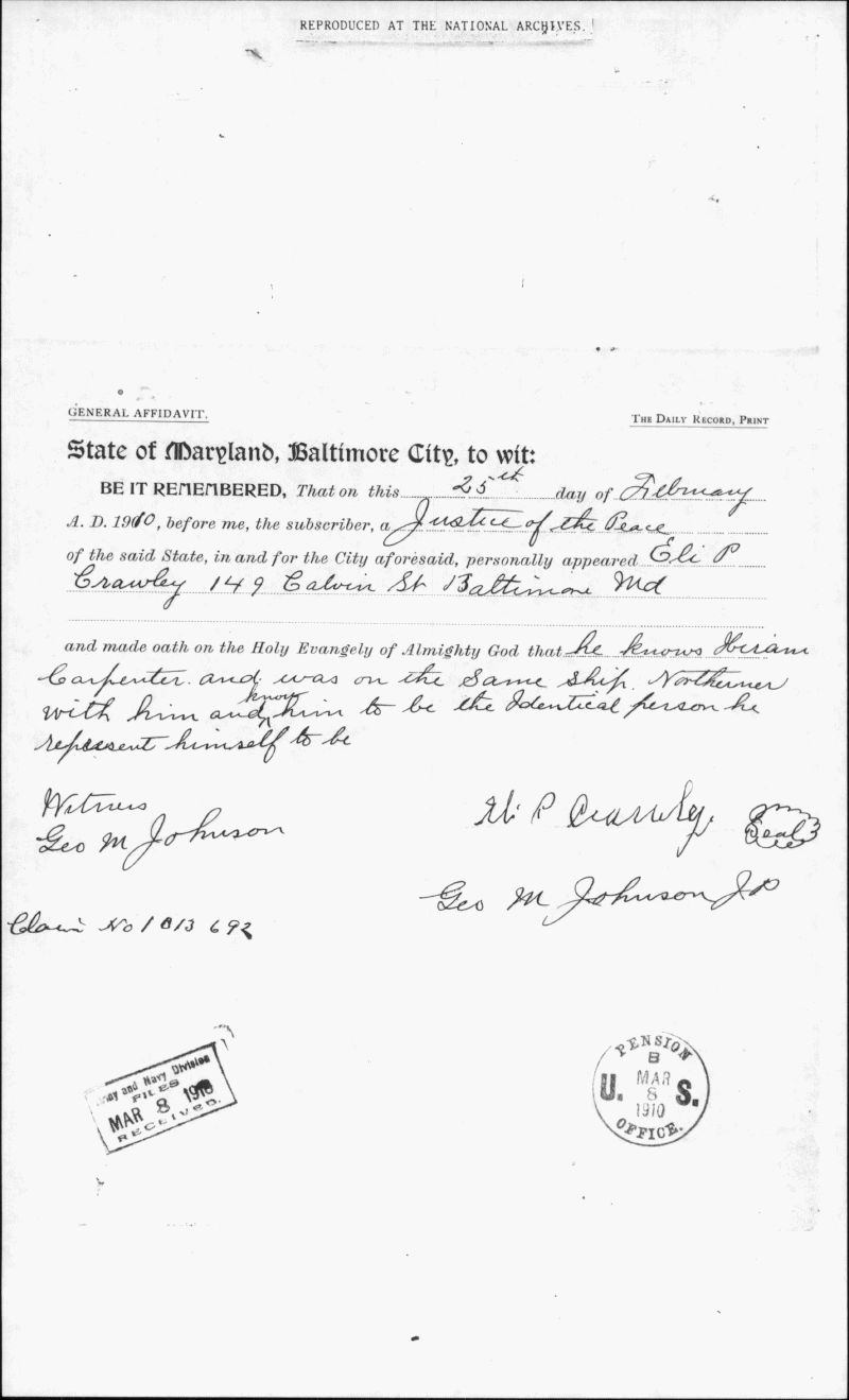 Maryland State Archives U.S. Colored Troops Pension File Collection Enlarge and print image (392K)      |