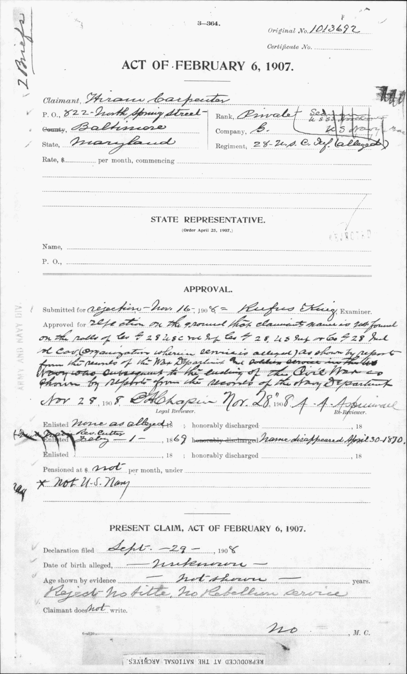 Maryland State Archives U.S. Colored Troops Pension File Collection Enlarge and print image (563K)      |