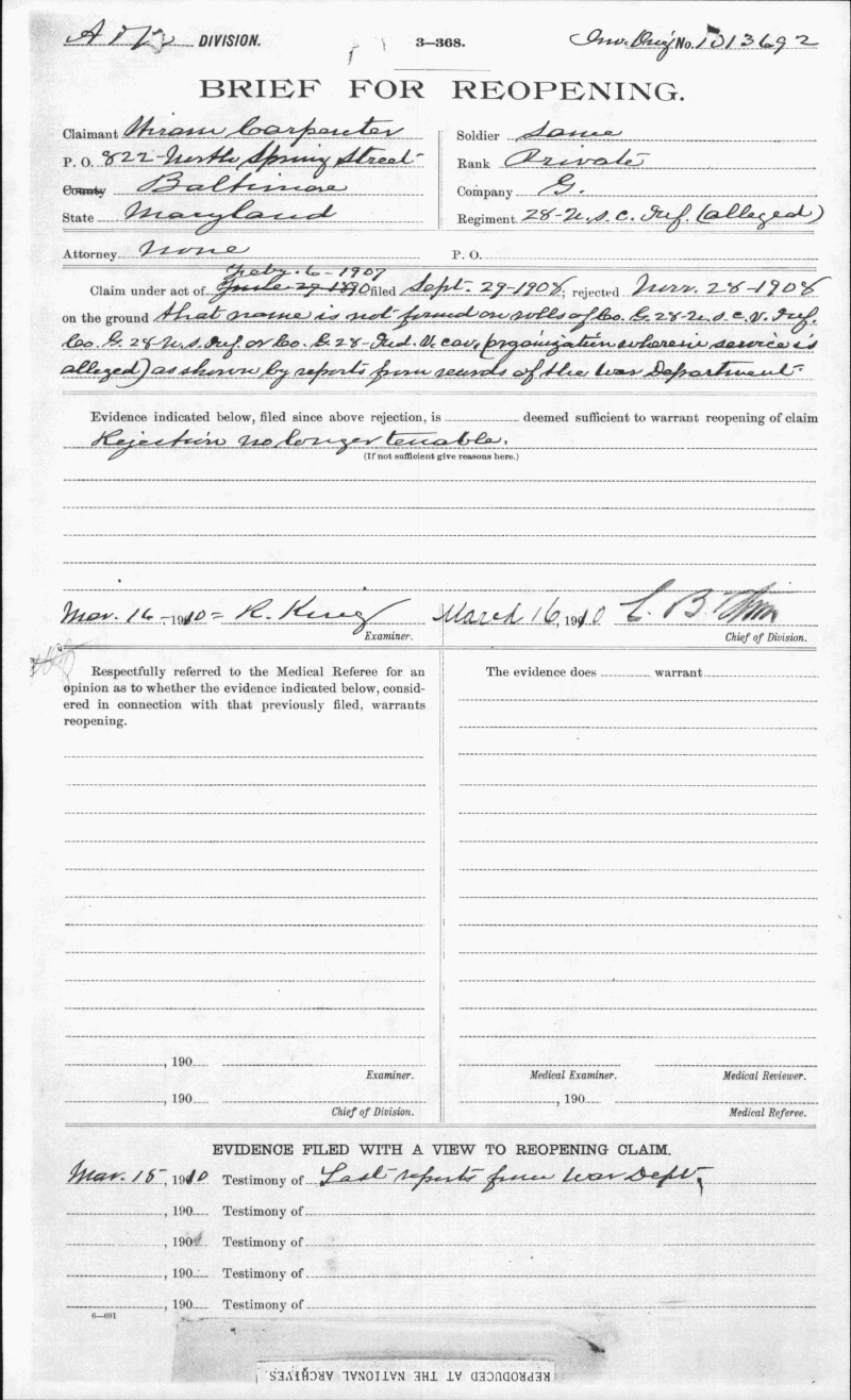 Maryland State Archives U.S. Colored Troops Pension File Collection Enlarge and print image (627K)      |