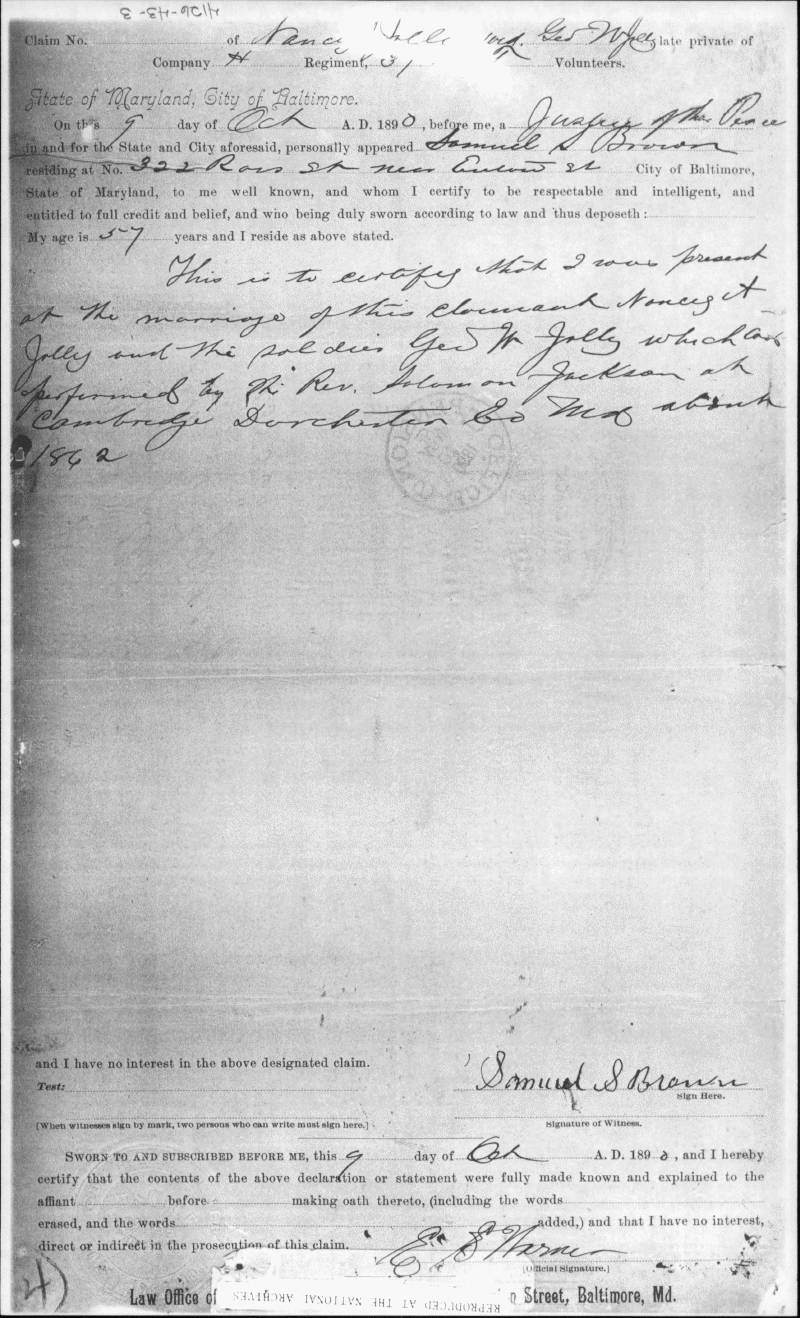 Maryland State Archives U.S. Colored Troops Pension File Collection Enlarge and print image (818K)      |