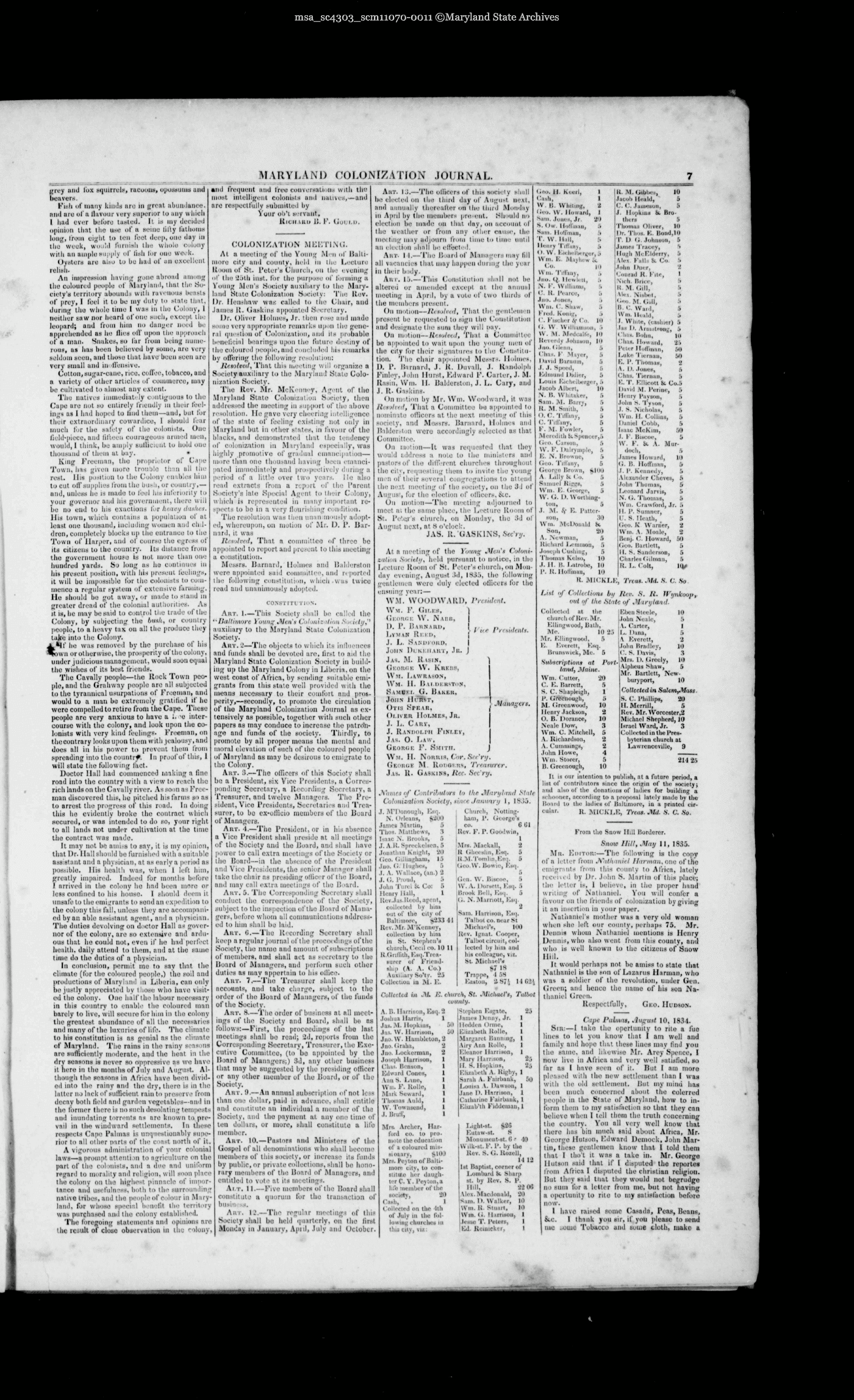 Maryland State Archives Maryland Colonization Journal Collection MSA SC 4303 msa_sc4303_scm11070-0011 Enlarge and print image (4M)      |