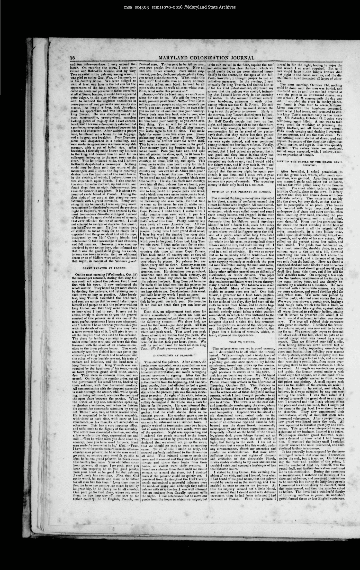 MARYLAND COLONIZATION JOURNAL.