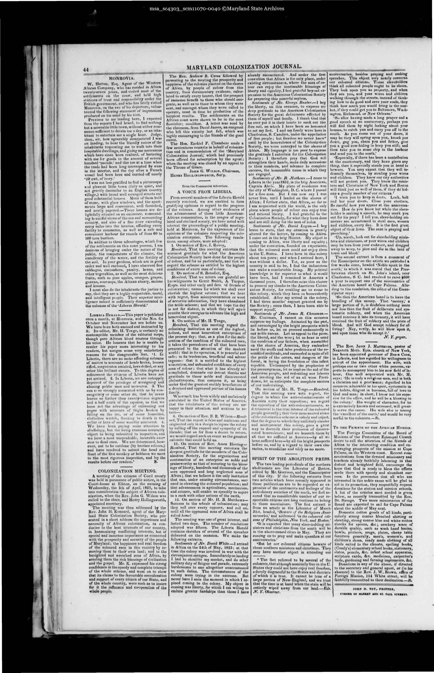 Maryland State Archives Maryland Colonization Journal Collection MSA SC 4303 msa_sc4303_scm11070-0040 Enlarge and print image (5M)      |