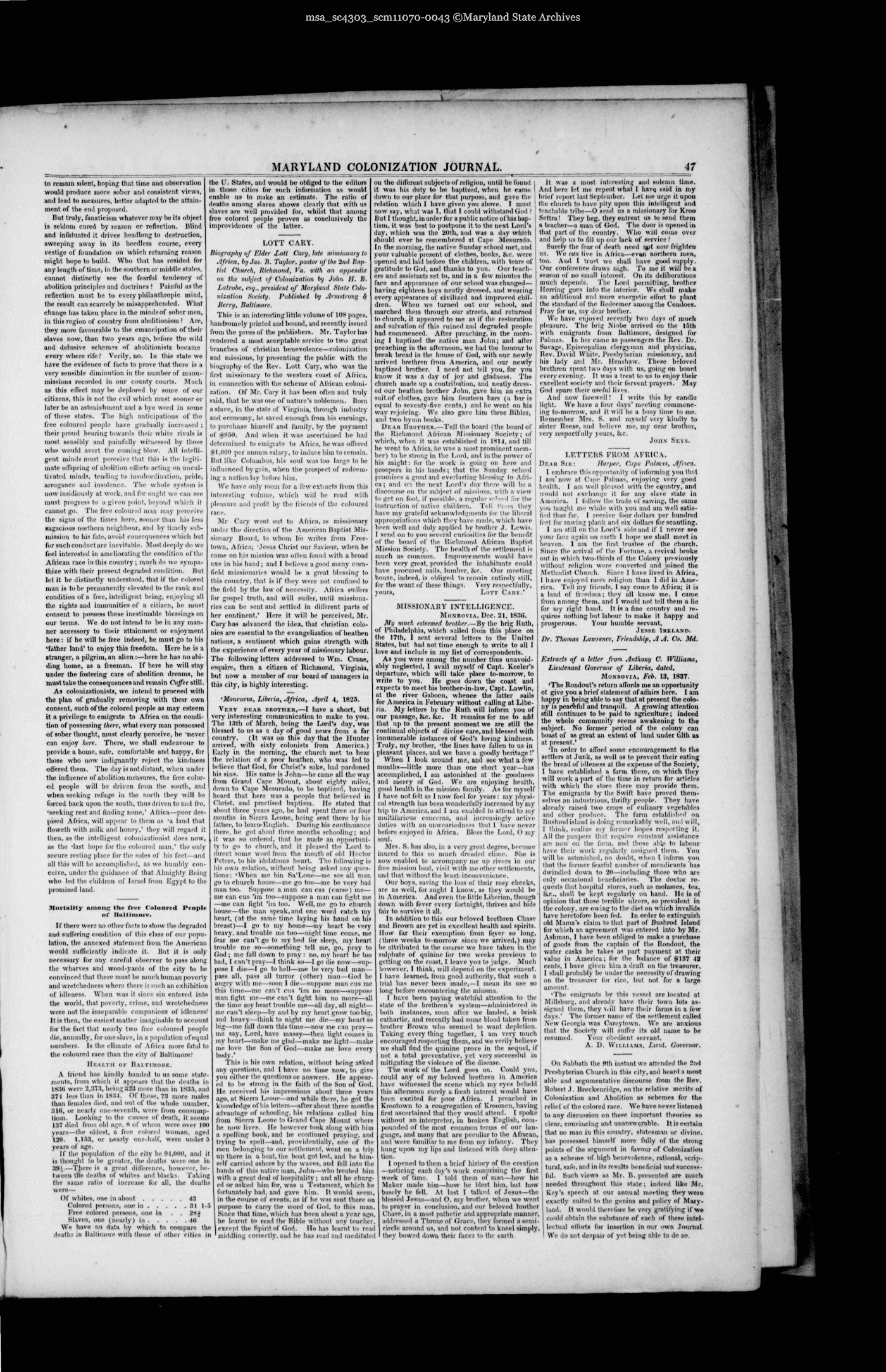 Maryland State Archives Maryland Colonization Journal Collection MSA SC 4303 msa_sc4303_scm11070-0043 Enlarge and print image (5M)      |