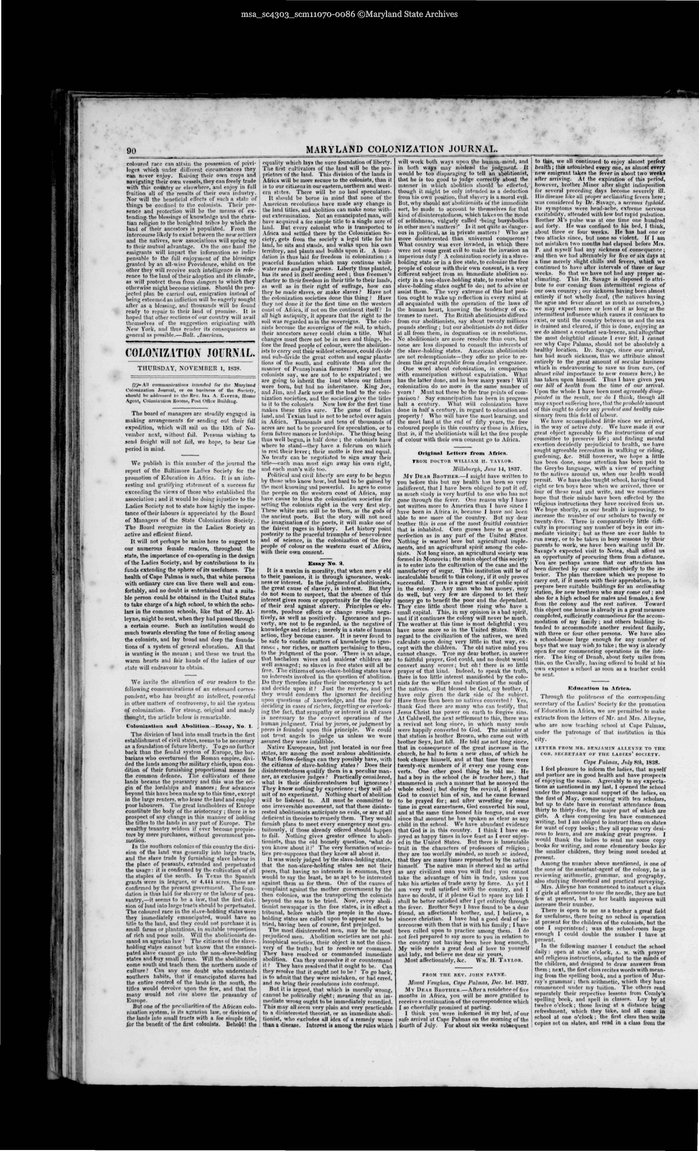 Maryland State Archives Maryland Colonization Journal Collection MSA SC 4303 msa_sc4303_scm11070-0086 Enlarge and print image (5M)      |