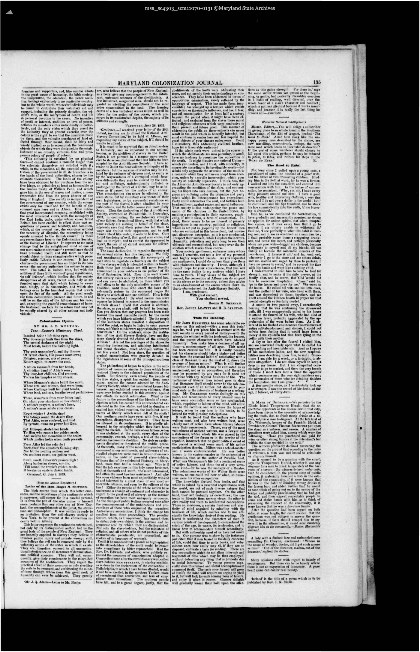 Maryland State Archives Maryland Colonization Journal Collection MSA SC 4303 msa_sc4303_scm11070-0131 Enlarge and print image (5M)      |