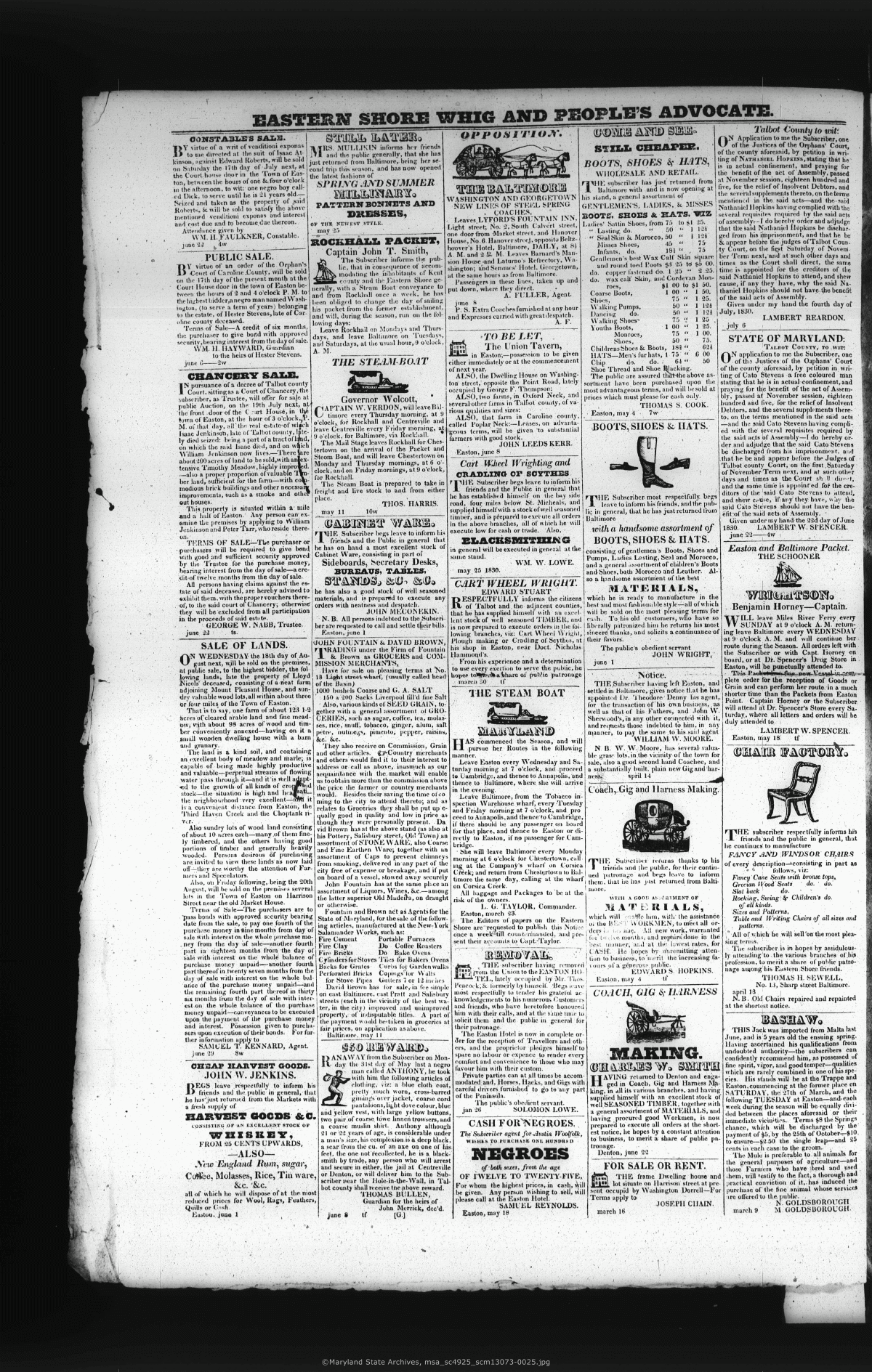 Maryland State Archives Eastern-Shore Whig and People's Advocate Collection MSA SC 4925 msa_sc4925_scm13073-0025 Enlarge and print image (4M)      |