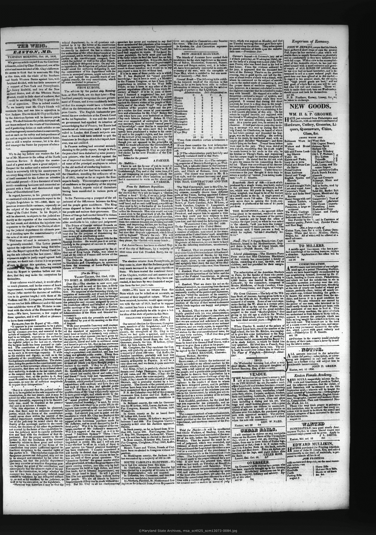Maryland State Archives Eastern-Shore Whig and People's Advocate Collection MSA SC 4925 msa_sc4925_scm13073-0084 Enlarge and print image (5M)      |