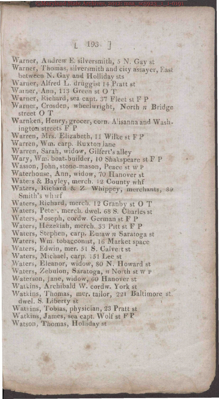 Maryland State Archives Baltimore City Directory, 1814-1815 msa_sc5923_1_1-0191 Enlarge and print image (407K)      |