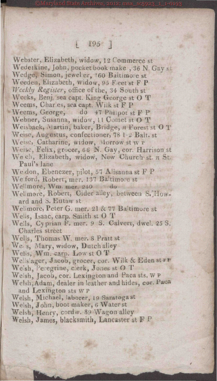 Maryland State Archives Baltimore City Directory, 1814-1815 msa_sc5923_1_1-0193 Enlarge and print image (393K)      |