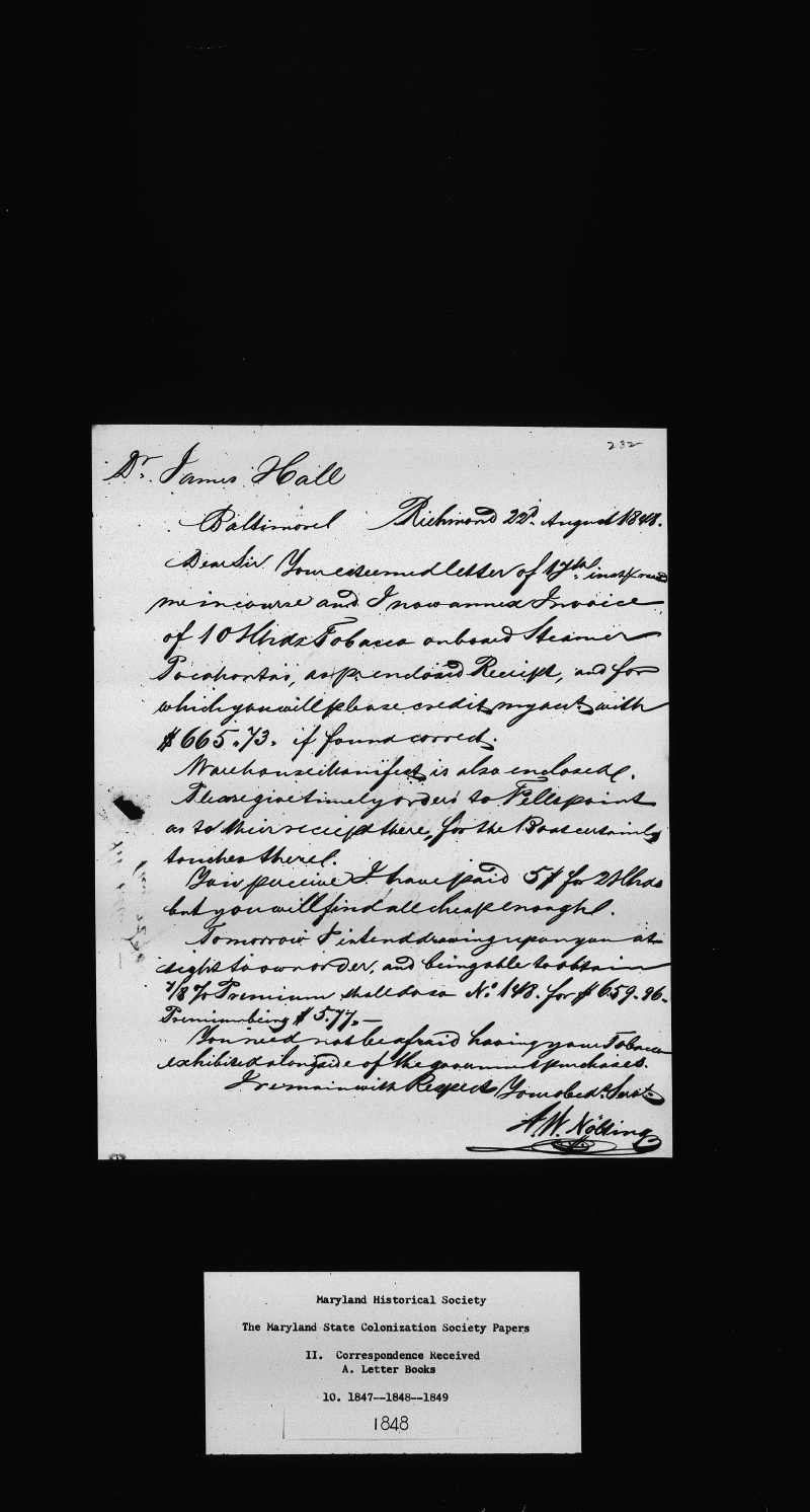 The Papers of the Maryland State Colonization Society Collection msa_sc5977_scm13228-0963 Enlarge and print image (1M)      |