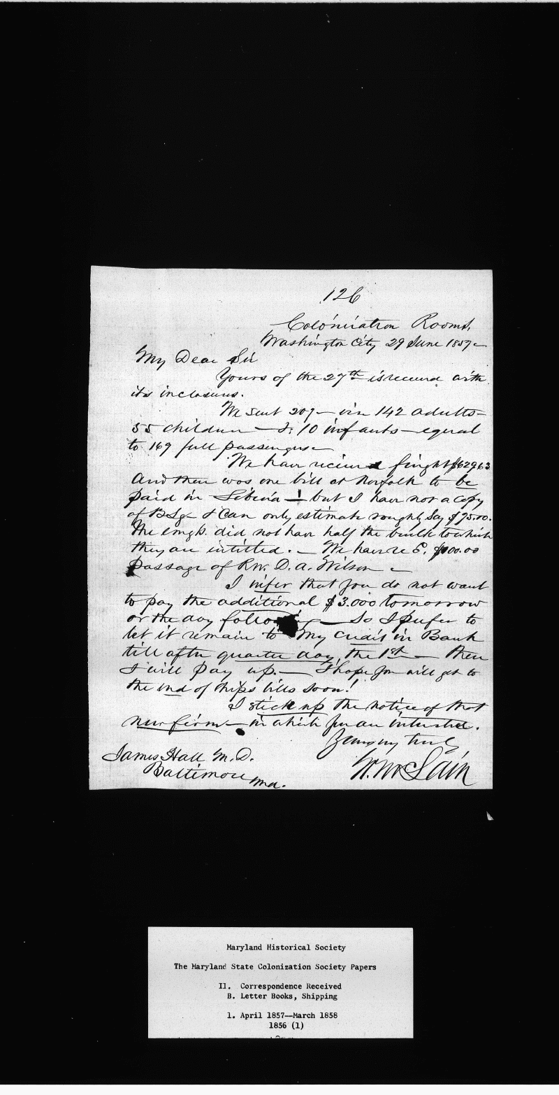 The Papers of the Maryland State Colonization Society Collection