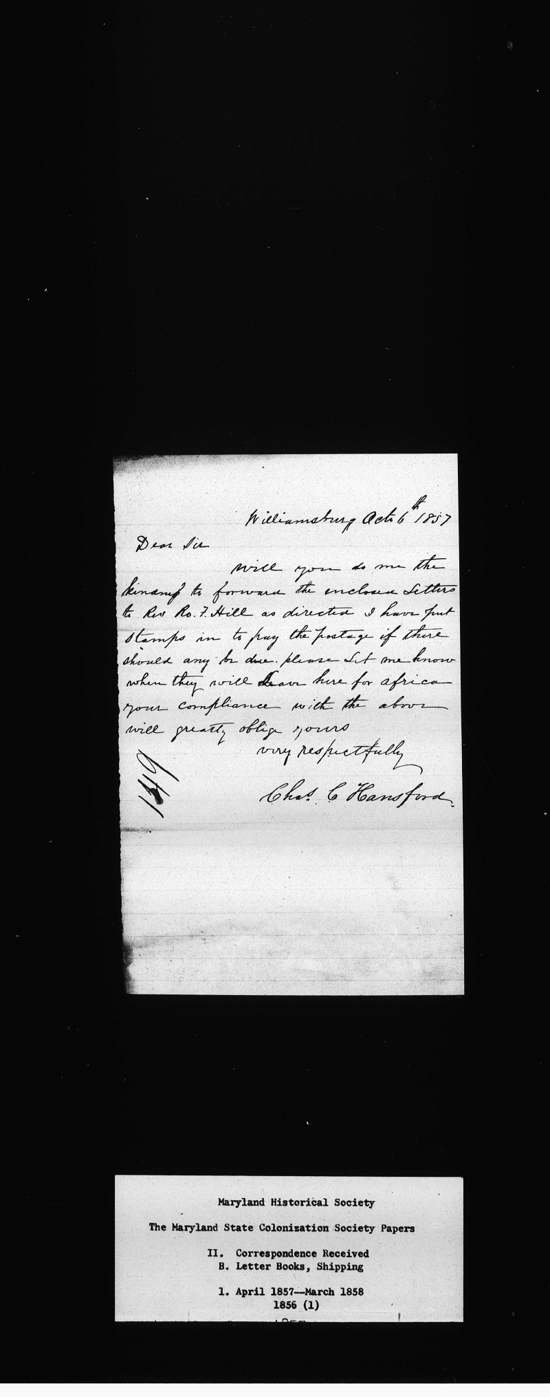 The Papers of the Maryland State Colonization Society Collection